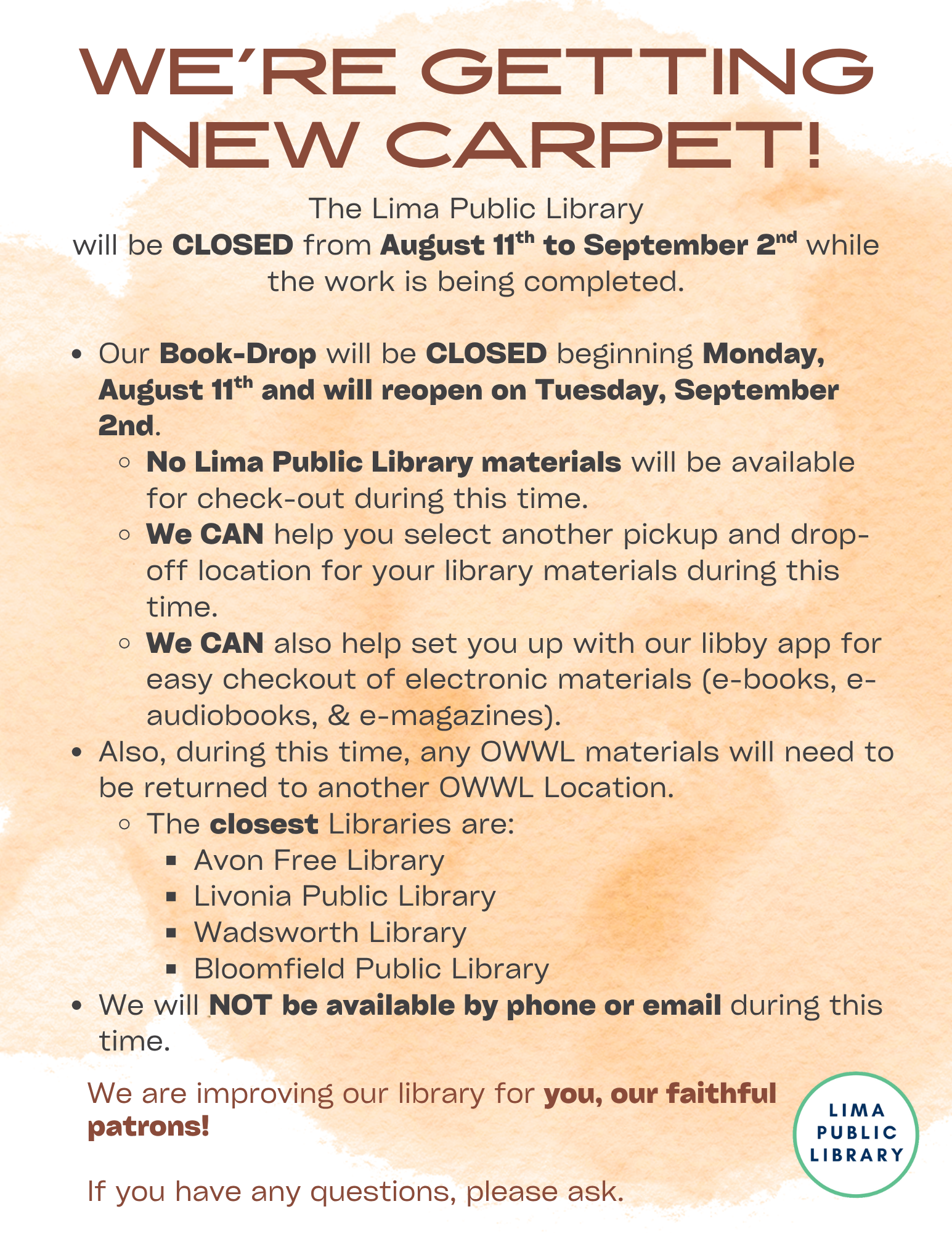 The Library is Getting NEW Carpet!!